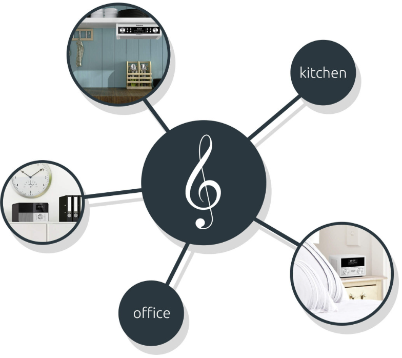 Prostřednictvím streamování zvuku můžete kdykoli snadno přistupovat ke sdílení médií UPnP, např. na síťovém pevném disku nebo zařízení fungujícím jako UPnP server, jako je TechniSat MultyVision nebo PC. Tímto způsobem můžete poslouchat svou oblíbenou hudbu na svém zařízení přímo z domácí sítě.