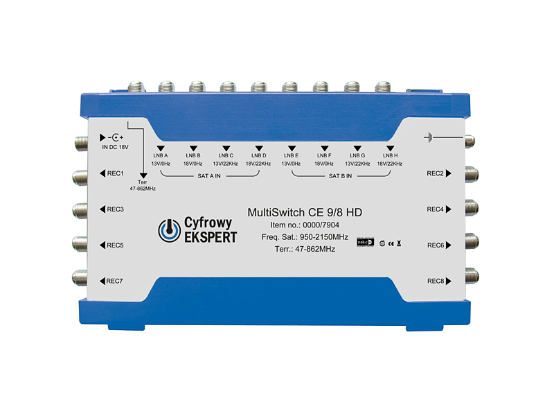 Distribuce signálu ze dvou satelitních pozic (2 x 4 polarizace) a DVB-T2 až pro 12 účastníků