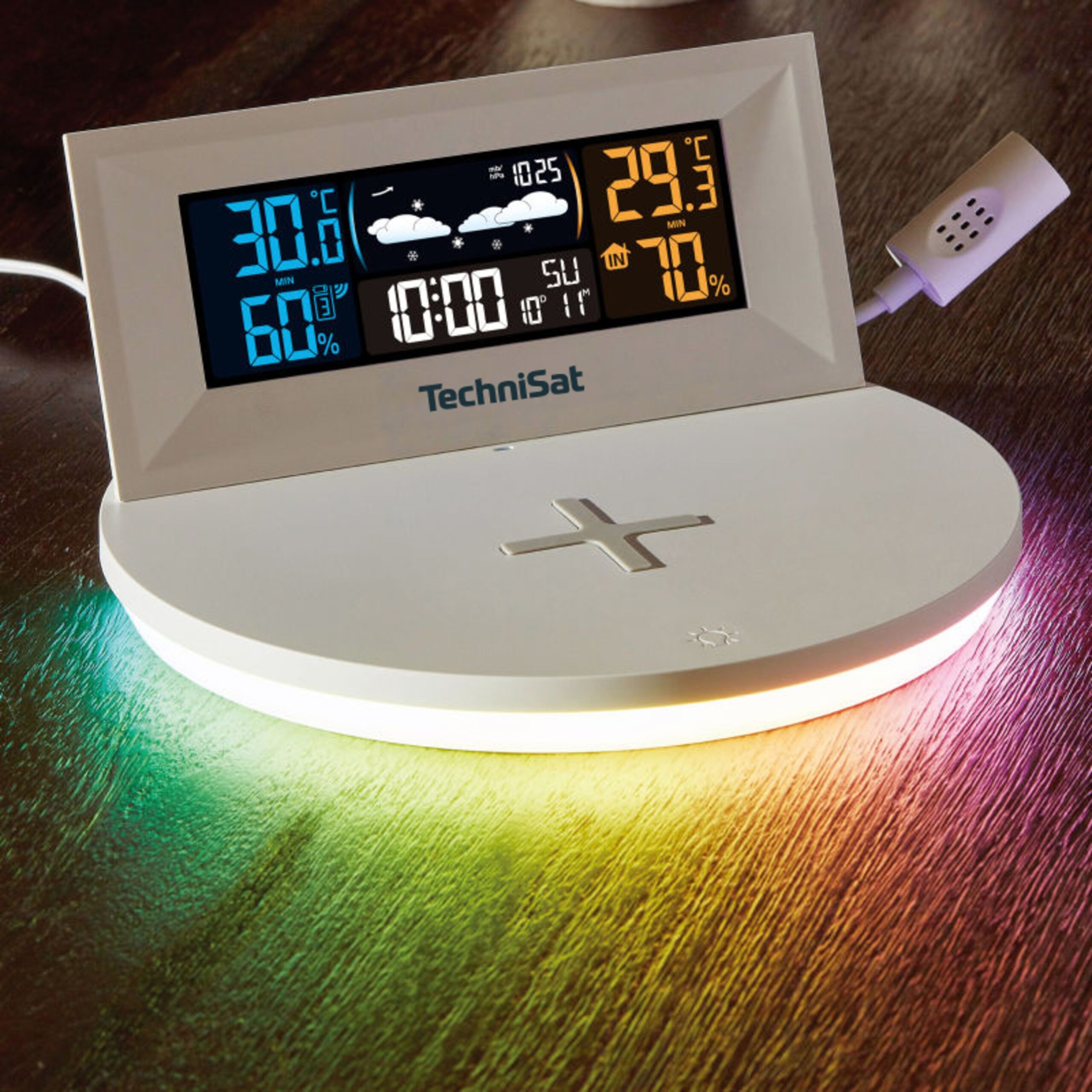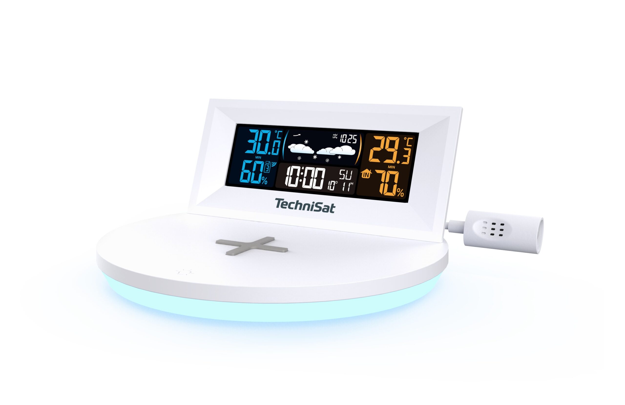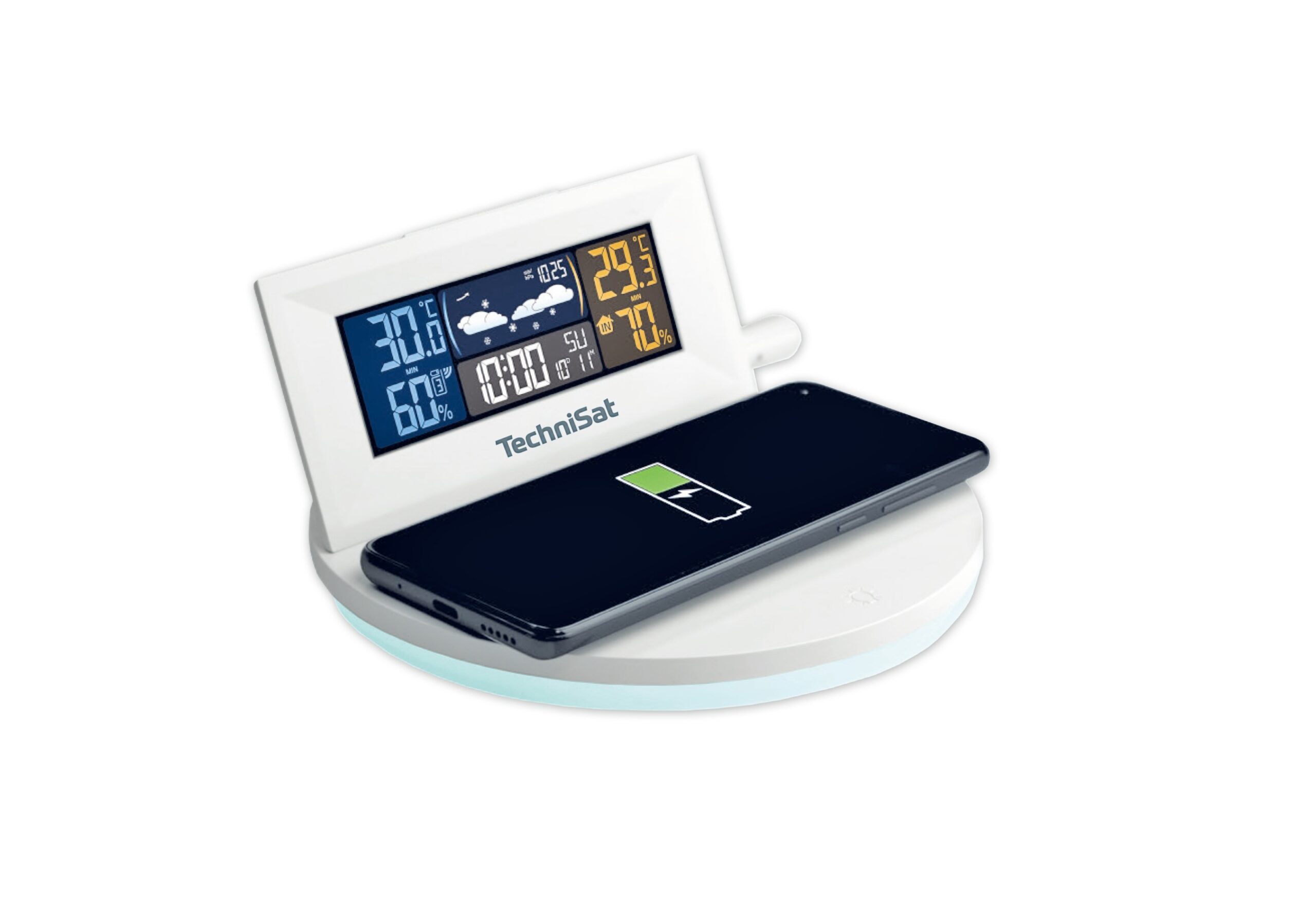 IMETEO Q1 je meteostanice pro měření různých hodnot počasí - teploty, tlaku vzduchu a vlhkosti. Zobrazuje maximální a minimální hodnoty teplot a vlhkosti. IMETEO Q1 navíc zjišťuje aktuální vývoj počasí a na základě naměřených ukazatelů vytváří předpověď počasí. Má také praktické funkce budíku a odložení. Vnitřní senzor poskytuje naměřená data uvnitř budovy, zatímco bezdrátový venkovní senzor zaznamenává naměřené hodnoty mimo budovu a odesílá je do základnové stanice. Bezdrátové venkovní čidlo s dosahem přenosu až 60 m ve venkovním prostředí lze snadno připevnit na zeď. Na velkém barevném displeji se třemi režimy podsvícení vidíte čas a všechny důležité měřené hodnoty a funkce. LED světlo základny může mít různé barvy. Kromě toho má základnová stanice nabíjecí plochu pro bezdrátové nabíjení kompatibilních zařízení, jako jsou chytré telefony a další.
