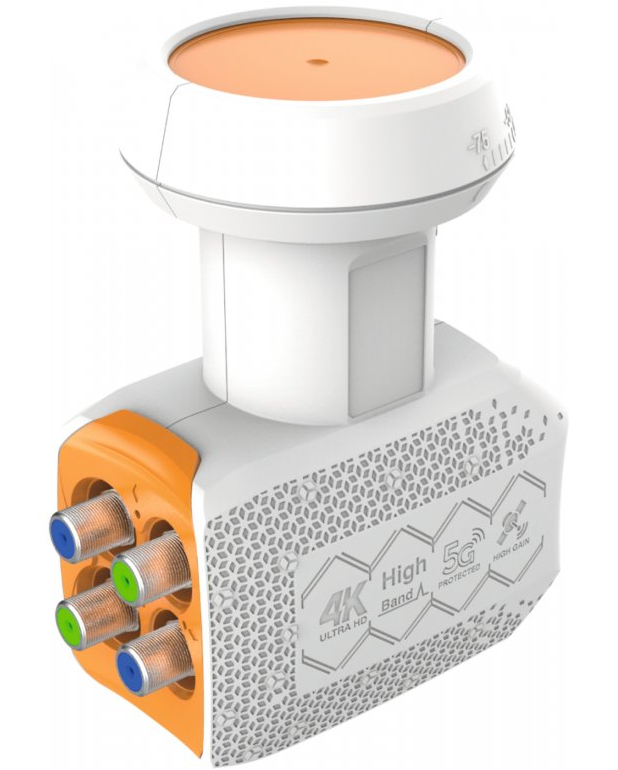 Velice kvalitní satelitní konvertor určený pro použití se satelitní parabolou vybavenou univerzálním držákem 40mm. Převodník funguje se všemi DVB-S/DVB-S2 přijímači. Je vhodný pro příjem satelitních programů nejen v HD, ale i UHD / 4K rozlišení a je vybaven čtyřmi F-výstupy pro připojení až čtyř set-top boxů/TV nebo dvou zařízení s Twin tunerem.