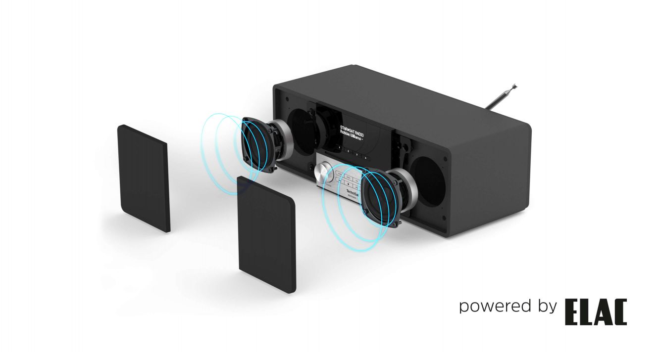 Tímto nabízí DIGITRADIO 3 prvotřídní ucelený balíček a to včetně perfektního zvuku. Vždyť digitální radio je vybaveno dvěma 10 W reproduktory od zvukových specialistů ELAC, které se starají svým optimálním uspořádáním o perfektní stereofonní dojem – nezávisle na tom, kde se právě v místnosti nacházíte. DIGITRADIO 3 produkuje vyvážený zvuk, který lze, dle osobních preferencí, ještě přizpůsobit ekvalizérem.