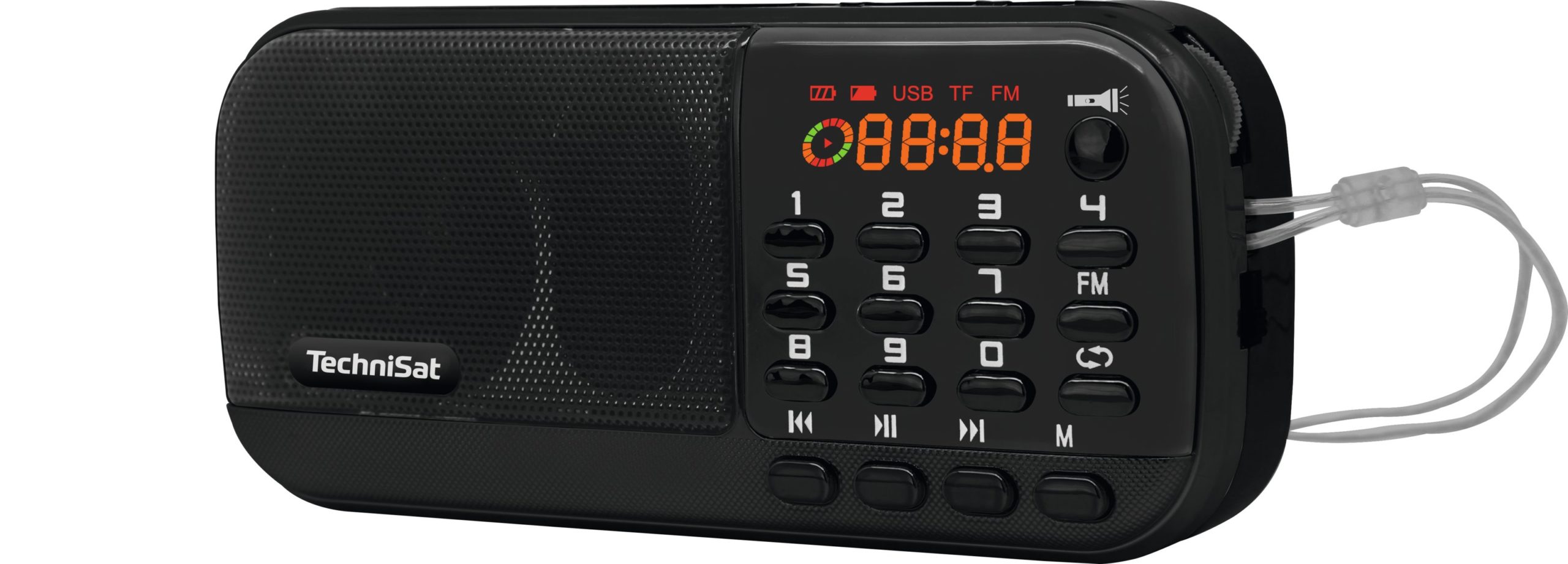 K ovládání voleb přehrávání a pohybu mezi skladbami můžete použít tlačítka na předním panelu. TRAVELRADIO 2 má vestavěnou LED svítilnu, zapíná se tlačítkem na předním panelu pouzdra a stane se jistě příjemným pomocníkem v temných chvílích. Rádio je napájeno 2 bateriemi. Nabíjení probíhá přes mini USB konektor a dodávaný USB kabel.